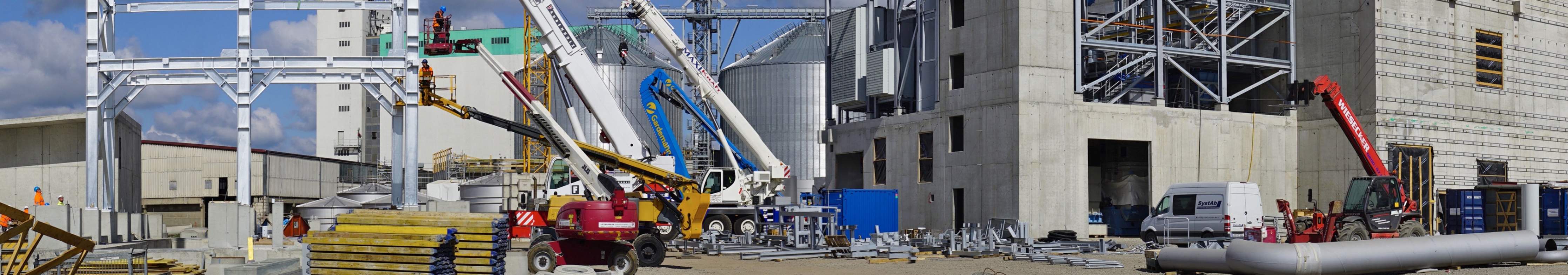 The major earthmoving. Excavators, bulldozers, and dump trucks moving volume, reshaping the site, and bringing it close to final elevations.